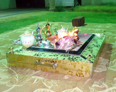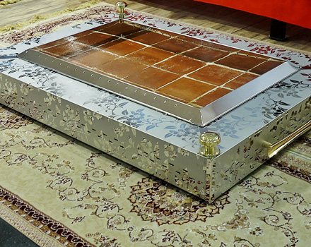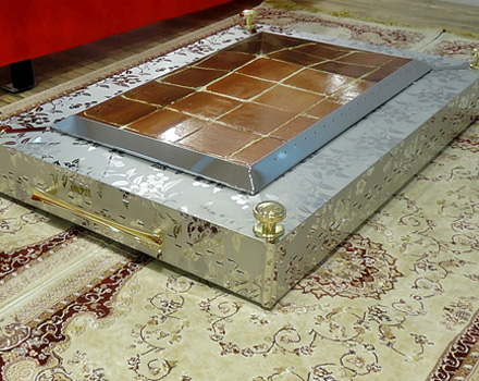 هو وجار غير تقليدي، صمم وصنع بطريقة مبتكرة بحيث يمكن إشعال الحطب داخلة فوق السجاد مباشرة دون أن يتأثر السجاد بالحرارة وذلك بفضل طريقة العزل المبتكرة.